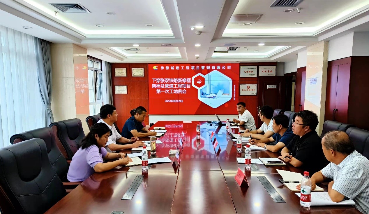2022年8月9日上午,承德市国瑞置业有限公司在国控大厦十二层第一会议室组织召开下穿张双铁路新修框架桥及管道工程项目第一次例会。市华体会手机网页版-华体会(中国)总经理徐俊儒、国瑞置业公司董事长胡杰出席会议。