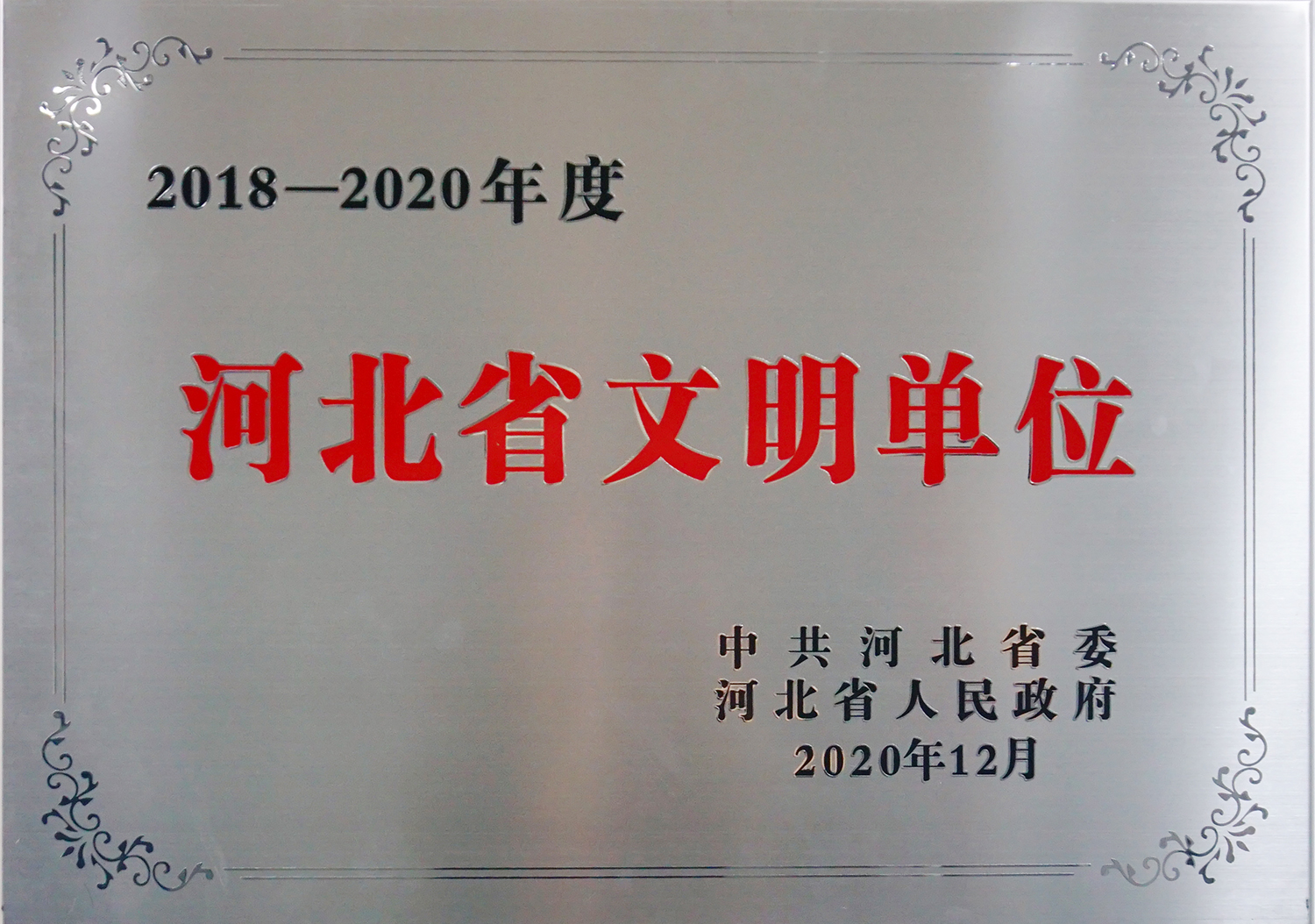 近日,中共河北省委、河北省政府下发《关于表扬表彰全省精神文明建设工作先进单位和先进个人的通报》(冀字〔2020〕28号),华体会手机网页版-华体会(中国) 被省委、省政府授予“河北省文明单位”称号。这份荣誉来之不易,它凝结了华体会手机网页版-华体会(中国)全体干部职工的心血和汗水,既是对华体会手机网页版-华体会(中国)精神文明建设工作的肯定,也是对全体职工爱岗敬业、诚实守信、遵纪守法,共同努力做文明人、办文明事的认可。