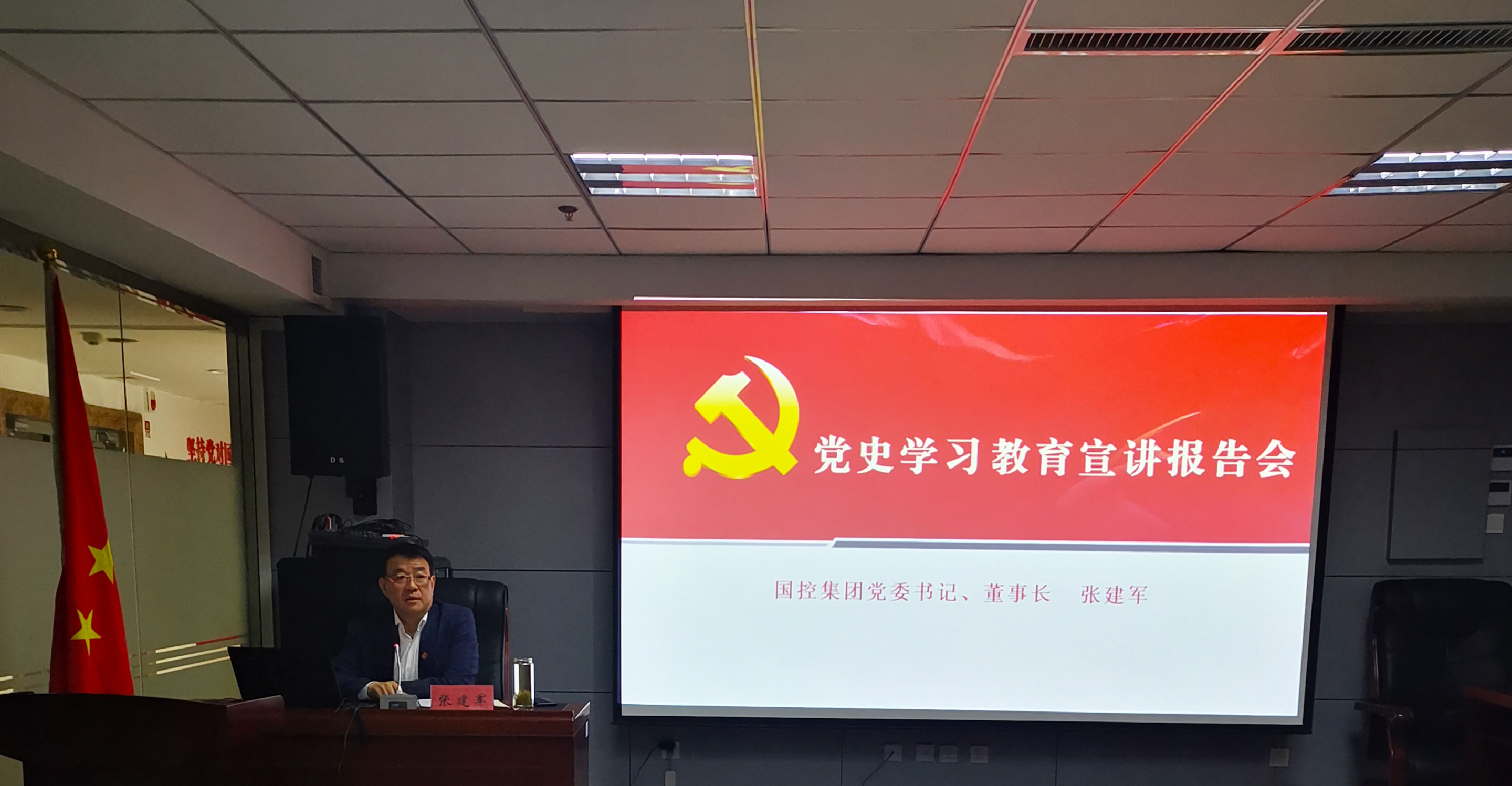 张建军从“深入学习领会习近平总书记关于党的历史的重要论述,充分认识开展党史学习教育的重大意义”、“认真研读党史基本著作,全面了解中国共产党百年奋斗的光辉历程和历史性贡献”、“深刻把握开展党史学习教育的重点”、“开展党史学习教育,要学懂弄通做实习近平新时代中国特色社会主义思想,增强‘四个意识’、坚定‘四个自信’、做到‘两个维护’”四个方面,为全体党员职工作了精彩的宣讲报告。宣讲报告主题鲜明、讲解透彻、通俗易懂,既有理论阐释、又有案例剖析,既有政治高度、又有实践深度,让大家对集团公司开展党史学习教育的重大意义、目标要求、重点任务,又有了更全面地认识和更深刻的理解。